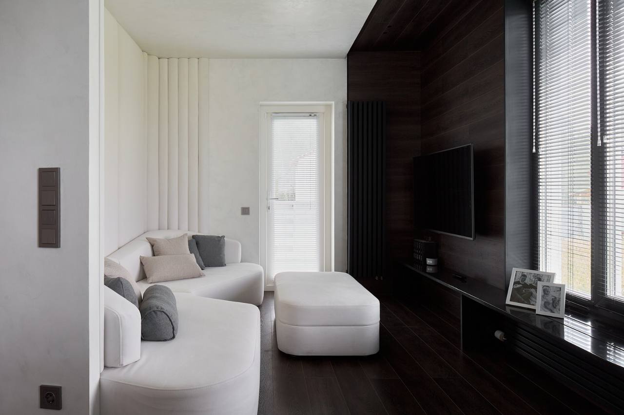 В итоге получился красивый, стильный проект во вкусе хозяев, который при этом стал очень комфортным и эргономичным пространством. Кофезона теперь отдельно от кухни - а значит, утром не нужно «стоять в очереди», и каждый может заниматься своими делами одновременно. Гардеробная и много закрытых мест хранения, большой удобный диван, прочные безопасные материалы и разные источники освещения — всё здесь собрано по деталям с умом и любовью одновременно.