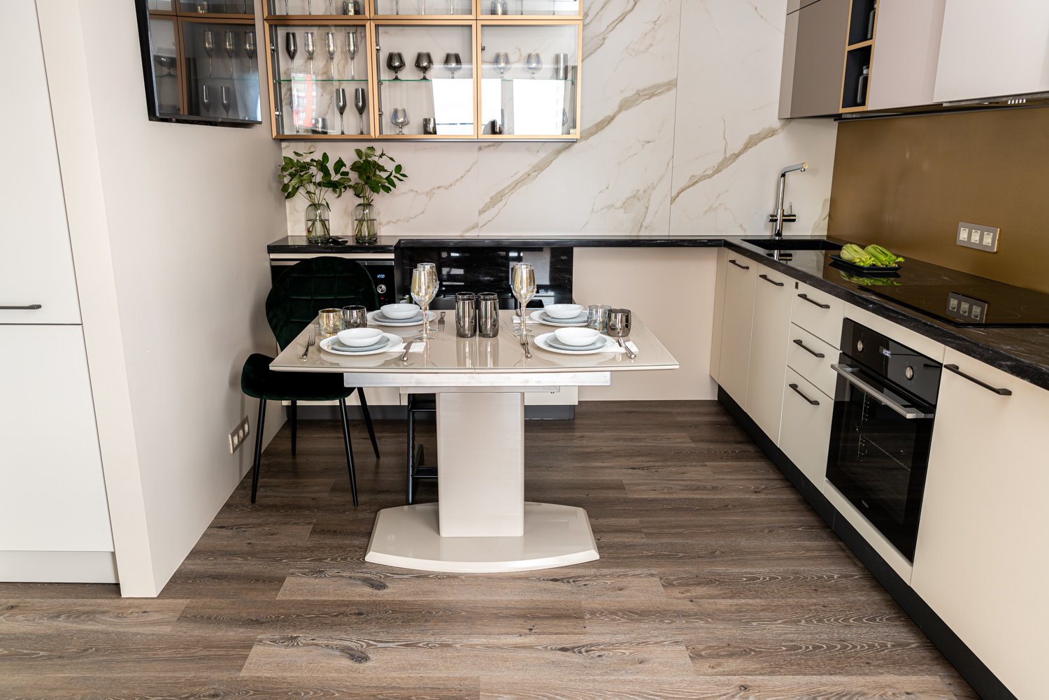 Перед дизайнером Татьяной Кононовой-Левиной стояла задача сделать так, чтобы на кухне было удобно жить, готовить и творить всем жителям квартиры, но и чтобы Данил смог пользоваться удобствами, такими элементарными, как сделать самому себе чай, набрать воды, сделать себе бутерброд. И задача удалась!